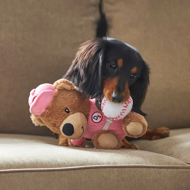 Frisco Baseball Bear Plush Squeaky Dog Toy, Pink
