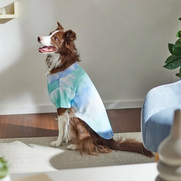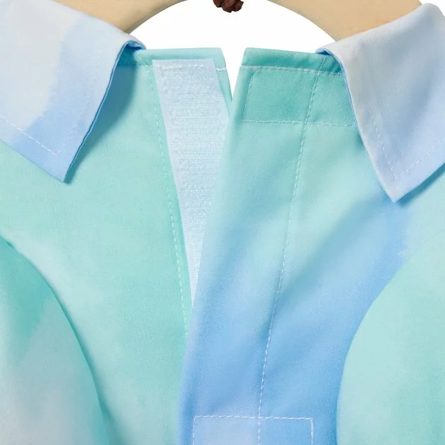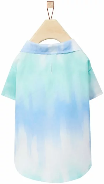 - Shirt features a blue, white and mint color scheme in a gradient pattern, making it a cool staple for your pet’s spring and summer wardrobe.