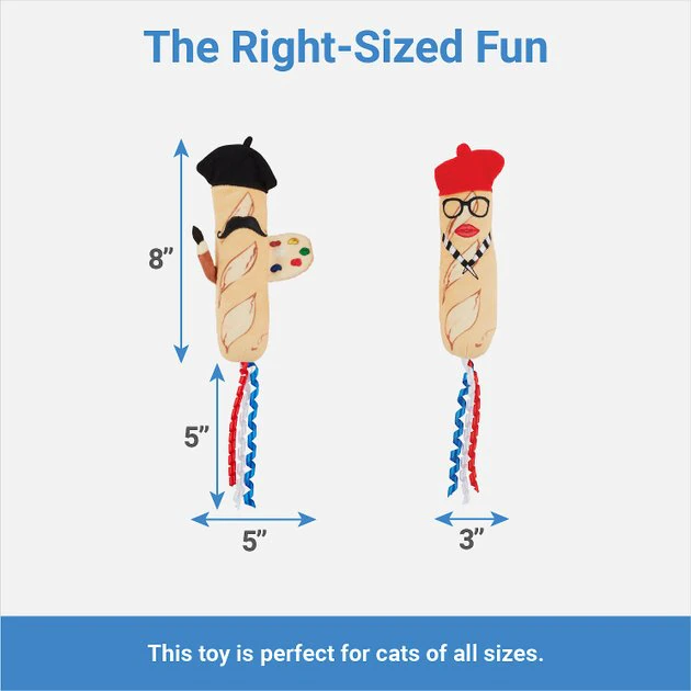 Make sure to add a plus one to the reservation list, because your feline friend deserves a seat at the brunch table! Just try not to get jealous when your kitty orders up this amazing French baguette combo, because it’s easily looking like the score at the table. As if this dynamic duo straight from the paw-tisserie wasn’t serving enough fun, they’re infused with catnip to keep your cat purring with delight way past brunch. Dressed up in appropriately French attire like a beret, smart glasses and the iconic mustache, this pair certainly looks the part, and that’s before we get to those dangly strings that kitty won’t be able to resist!