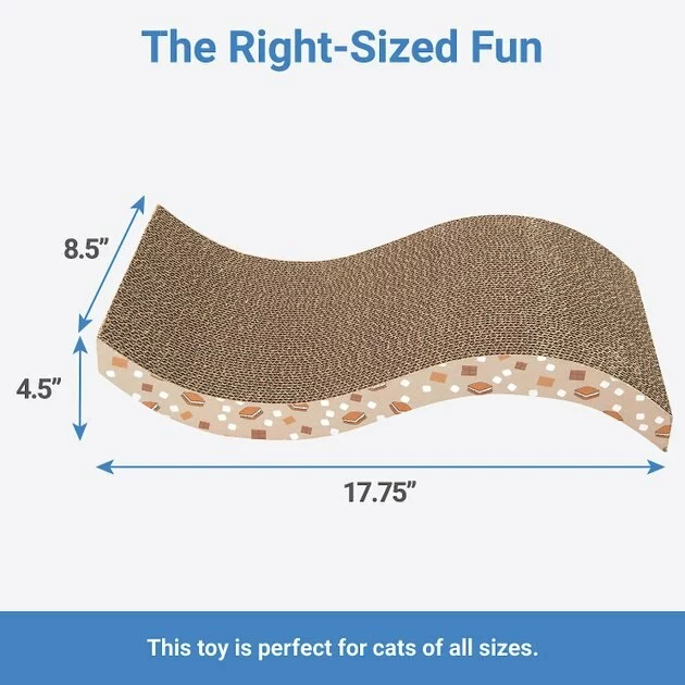 - Shaped for scratching and stretching with the cat-approved wavy design.