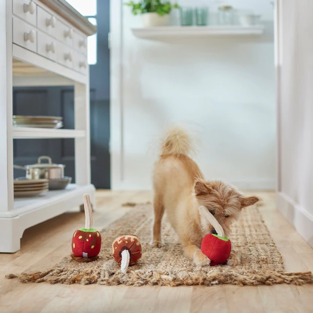 Candied apples. Don’t you just wish you could let your dog dig into this fall favorite? Well, these are pretty close to the real thing and way more fun! Each soft, plushy apple is great for a dog’s favorite games, like never-ending fetching, and each one has a squeaker to keep them focused on the play. Bring these toys home as a sweet treat for your extra-small or small dog!
