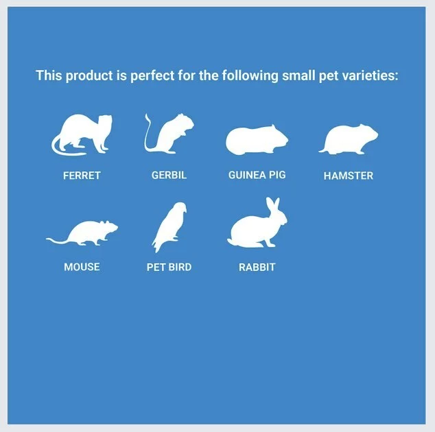 | Small Pet Type | Ferret, Rabbit, Guinea Pig, Mouse, Hamster, Gerbil, Chinchilla |