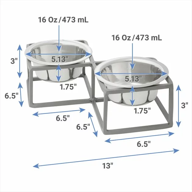 - Elevated stand helps reduce neck strain for your pet and makes mealtime more comfortable.
