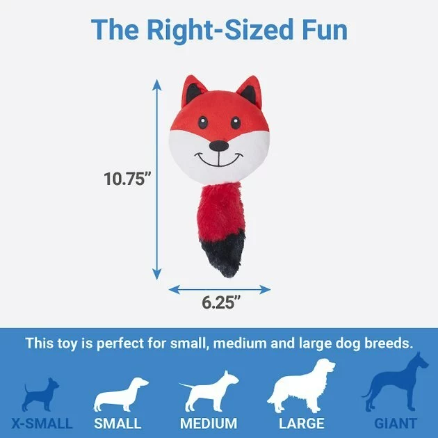 - Super cute, round fox design keeps your dog excited to play with their forest friends.