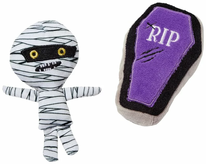 Give your kitty a Halloween treat with this duo of classic, spooky toys to get them in the spirit! This two-pack includes a coffin toy and an adorable mummy that team up to bring your cat twice the fun when it’s time to play. They’re covered with claw-friendly fabric, plush-stuffed and infused with exciting catnip to make play seem irresistible. With this terrific twosome, your cat will be on the prowl for fun all through the Halloween season.