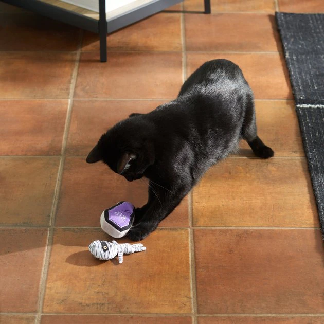 - Brings the spirit of the spooky season to your cat’s frighteningly fun Halloween toy collection.