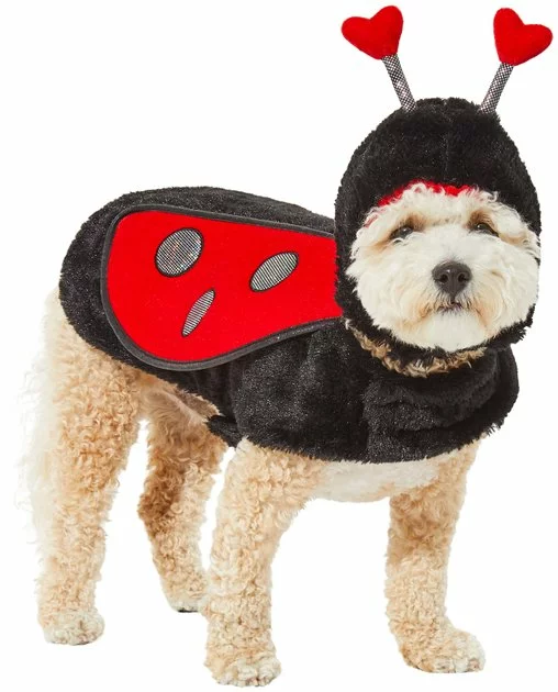 How can your lovebug get cuter? With the Frisco Ladybug Dog & Cat Costume, of course! This two-piece costume comes with a ladybug body that attaches with hook-and-loop fasteners at the neck and belly, and it’s made from furry fabric with red velvet wings attached. The separate headpiece really tops things off with two heart antennae and a hook-and-loop chin strap for less fuss when it’s time to dress up. Be the talk of the trick-or-treat walk with this adorable costume from Frisco!