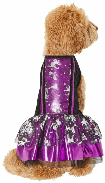 Brewing up some fun for your furry friend this Halloween? Get them ready to rule the night with the Frisco Midnight Witch Dog & Cat Costume! Whether they wear it on its own or pair it with the matching Frisco Midnight Witch Hat, this costume is perfect for Halloween parties, photo ops or trick-or-treat trips. It goes on easily with hook-and-loop fasteners at the neck and belly, which help keep your pet comfortable while they’re looking oh-so-cute, so there’s less fuss when it’s time to dress up. This spooky season, get your pet into the spirit with Frisco!