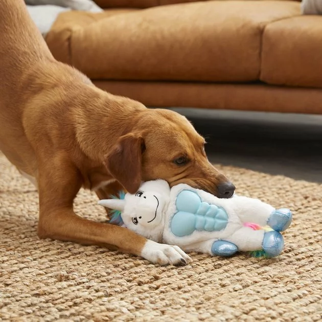 - Plush unicorn dog toy is made with materials to provide unlimited play potential for energetic dogs.