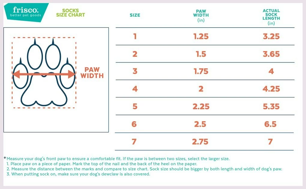 | Size | Paw Width | Sock Length | Recommended Breed Size |