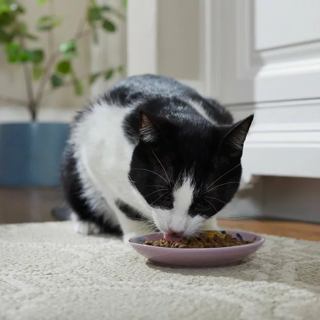 - Adds a little fun paw-sonality and color to your cat’s dinnerware.