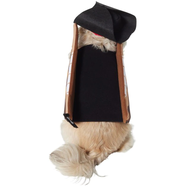“X” marks the spot, and your pet is on a quest for all the snacks in the neighborhood wearing this adorable pirate ship costume, from Frisco, by Chewy! This awesome Halloween costume works for both cats and dogs! It features a brown pirate ship as the body, with a black, pirate hat headpiece. If that wasn’t enough, it also comes in a variety of sizes so that every pet can get a chance to dress like a pirate for Halloween!
