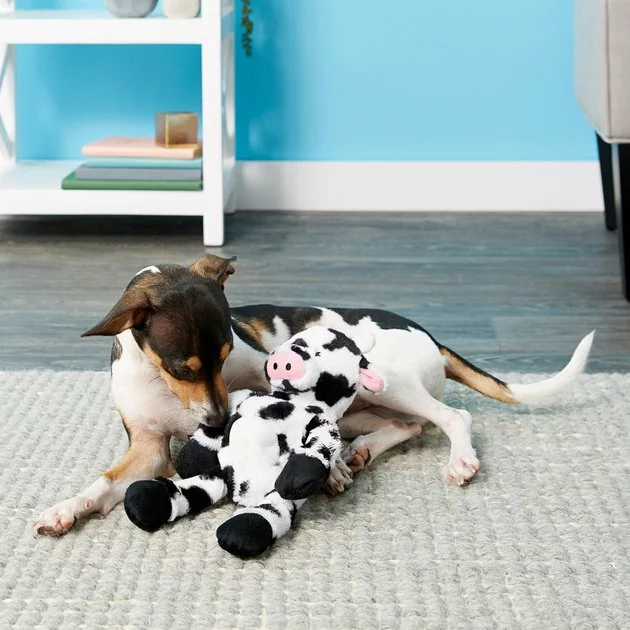 Toss, squeak, repeat—bring on every game with your pooch with the Frisco Plush with Inside Rope Squeaking Cow Dog Toy. This cuddly critter has a unique design that features a built-in rope throughout for added fun. Plus, it’s made with minimal stuffing for just the right amount of plush. The built-in squeaker is sure to get your canine companion excited for play, while the ultra-soft outer fabric is perfectly suitable for plenty of snuggling.