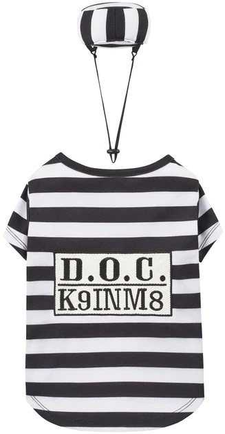 Frisco sentences your pet…to a Halloween filled with cuteness! The Frisco Prisoner Dog & Cat Costume is a complete look to take Halloween fun to a new level. This costume includes a pullover-style shirt with a “K9INM8” graphic, a separate hat with adjustable elastic ear and chin straps, and a dry-erase board that says “Guilty as Charged: Disorderly Conduct.” Whether you’re heading to a Halloween party or around the block for some trick-or-treating, everyone will know your pet’s true crime: being too cute!