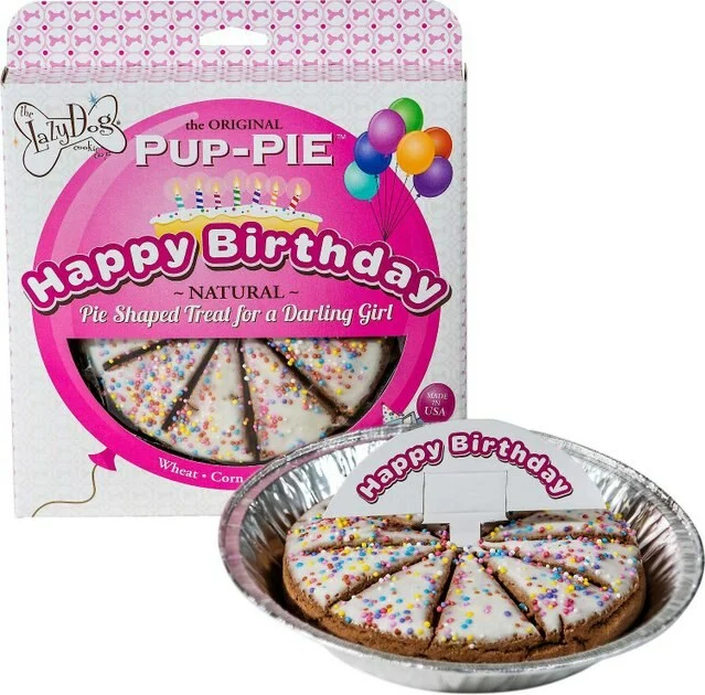 - Pie-inspired dog treat comes with ten slices of tasty goodness to celebrate your dog’s birthday.