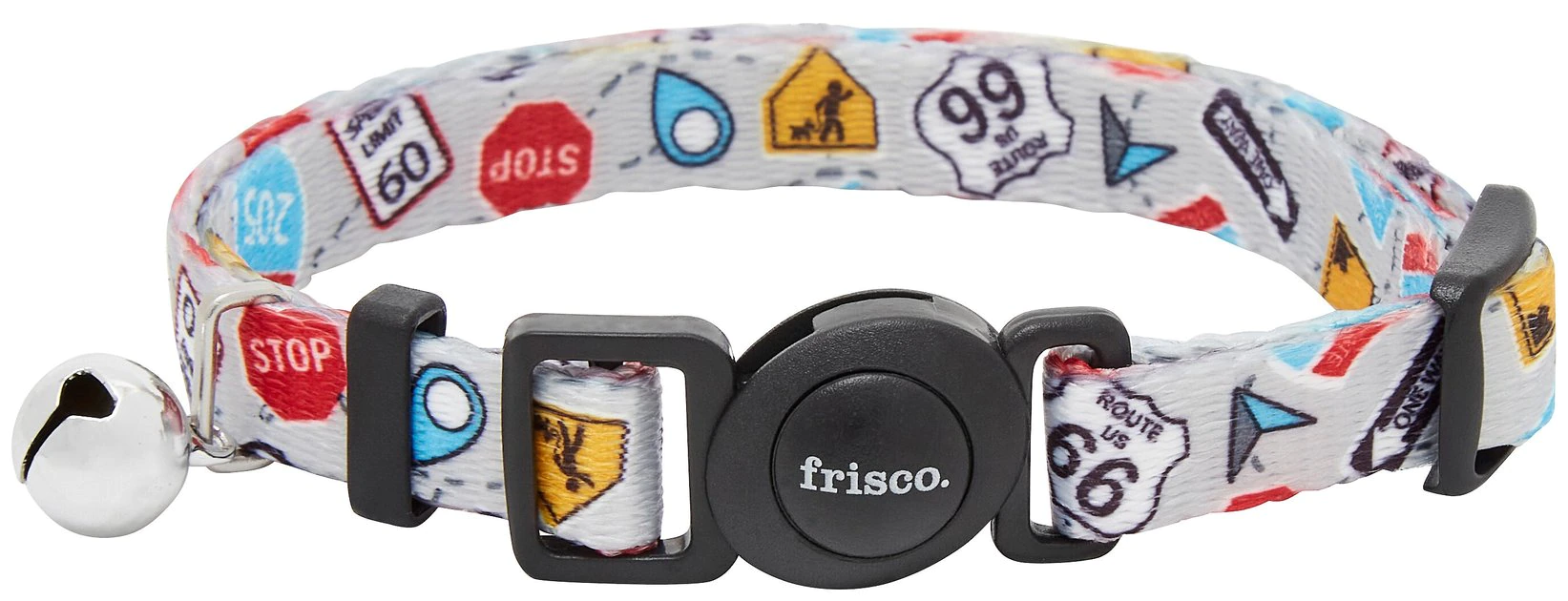 Sightseeing around the backyard or taking in the great indoors? Whether your cat goes outside or is indoor only, this breakaway collar combines comfort and safety for every kitty. It’s made with high-quality polyester webbing with a roadtrip-themed, traffic sign pattern and has sturdy plastic hardware with rounded edges that don’t poke, a metal ring for an ID tag, and a quick-release breakaway buckle. It clips in easily and stays on securely, but comes off quickly if the collar is pulled. Cats can explore with confidence thanks to this kitty safety mechanism, since it allows the collar to come undone if it gets snagged on a branch, furniture or other hazard.