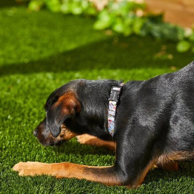 This collar has been fantastic for our mini Dachshund. It’s adjustable and holds up well during our daily walks. The traffic sign patterns are super cute!