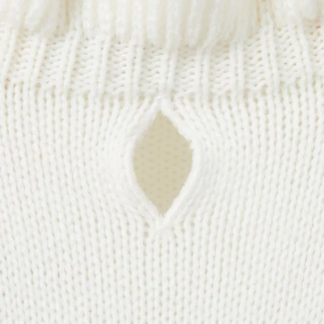 This stretchy, pullover sweater dress gives your dog the cuteness of a dress on bottom with the look of a sweater on top. The two-color, cream and red fabric is great for winter holiday get togethers, and its v-shaped ruffle on the chest adds a little extra style to your dog’s winter wardrobe. Plus, it features a leash hole on the back so your dog can wear it all around town on your winter walks together.
