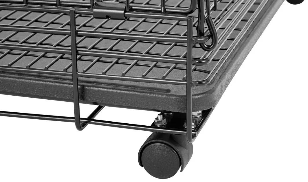 - Constructed with sturdy, e-coated metal wire for durability and includes a plastic pan to help contain messes.