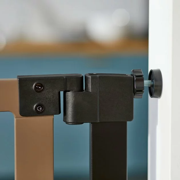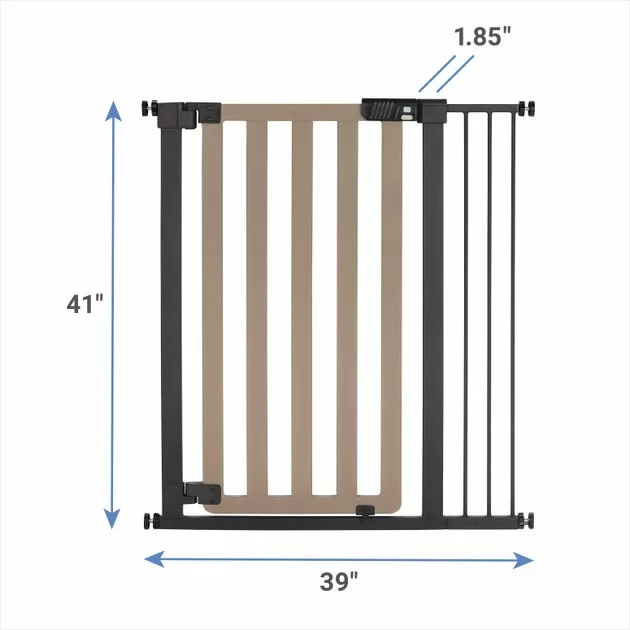 Set aside some space in your home just for your pet with the Frisco Wood & Metal Extra Tall Auto-Close Pet Gate. The extra-tall design makes this gate ideal for keeping larger pets or pets with lots of hops in their safe spot in your home. It’s made from steel with wood accents, so it’s lightweight, durable and it looks great in your home, too. The double-lock safety release makes sure the door stays securely locked when it needs to be, and the auto-close feature adds another layer of security and convenience. If you leave it open more than 90 degrees, the door will stay open—if you leave it open less than 90 degrees, it will automatically shut behind you. Plus, assembly is a breeze. All you need is a screwdriver or drill and a pencil, and the pressure mount system makes setup and takedown quick and simple.