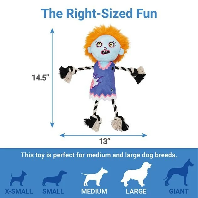 Frisco Zombie Girl Plush with Rope Squeaky Dog Toy