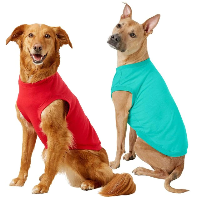 Remember to measure your pet for the paw-fect fit. Your furry friend is going to be extra fashion fur-ward with this Frisco Basic Dog & Cat T-Shirt, Red + Teal, X-Large bundle! These lightweight t-shirts are made with a breathable cotton-polyester blend. The pull-over style makes it easy to get your pet dressed—so she can be the center of attention! Plus, they are both machine-washable and purr-fectly grr-eat for dogs and cats alike!